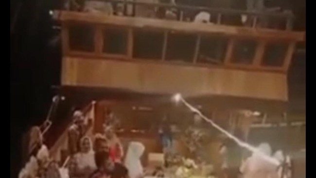 Pada video ini juga diperlihatkan adanya kembang api dan ucapan selamat ulang tahun yang diduga ditujukan kepada pembuat acara tersebut. Tidak hanya di lantai 1, para tamu undangan ini juga menari di atas lantai dua kapal.