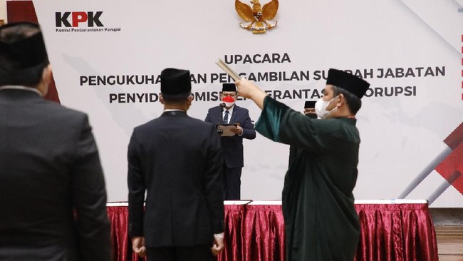 "Tadi siang kawan-kawan seluruh anak bangsa, terdapat 18 pegawai KPK yang sudah dilantik menjadi Aparatur Sipil Negara," kata Ketua KPK Firli Bahuri di Gedung Merah Putih KPK, Jakarta Selatan, Rabu (15/9/2021).