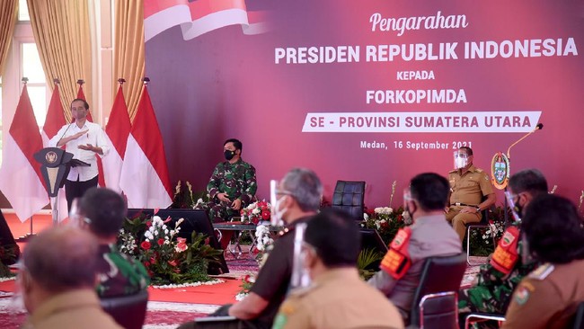 "Setiap saya datang, ke provinsi, ke daerah kabupaten/kota, selalu yang dikeluhkan vaksin," kata Jokowi di rumah dinas Gubsu, Medan, Kamis (16/9/2021).