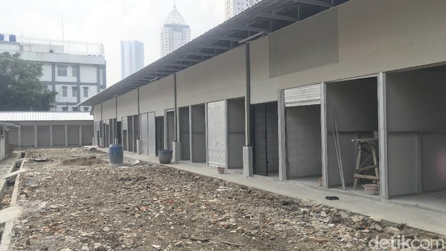 Pantauan detikcom di Pasar Lontar, Jl Sabeni, Kelurahan Kebon Melati, Tanah Abang, Jakarta Pusat, Jumat (17/9/2021), terlihat pembangunan Pasar Kambing ini masih berlangsung.