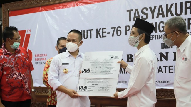 Palang Merah Indonesia (PMI) Kabupaten Kebumen merayakan hari jadi PMI Nasional ke-76 malam tadi. Pada acara yang dibarengi dengan launching Bulan Dana PMI 2021 itu, Bupati Kebumen Arif Sugiyanto turut menyumbang 1 unit mobil.