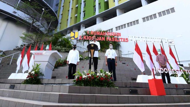 Presiden Joko Widodo (Jokowi) meresmikan Rusun Pasar Rumput, Jakarta Selatan. Jokowi berharap rusun ini bisa menampung masyarakat yang terkena dampak program normalisasi sungai.
