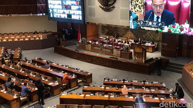 "Yang terhormat Ketua DPR RI hadir secara virtual, Wakil Ketua DPR yang hadir virtual, yang terhormat para anggota Dewan. Menurut catatan dari Sekjen, daftar hadir rapur hari ini telah ditandatangani oleh hadir fisik 58 orang, virtual 198 orang, izin 64, jumlah 320 orang dari 575 anggota DPR RI. Dihadiri seluruh fraksi di DPR. Dengan demikian, kuorum telah tercapai dan perkenankan kami membuka sidang paripurna," kata Dasco membuka rapat.