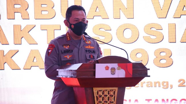 Serbuan vaksinasi dan bakti sosial ini digelar di WOW Sport Club Citra Raya, Kabupaten Tangerang, Banten, Selasa (21/9/2021). Sigit menekankan serbuan vaksinasi ini merupakan wujud sinergisitas dan soliditas TNI-Polri dalam menekan dan mengendalikan laju pertumbuhan COVID-19.