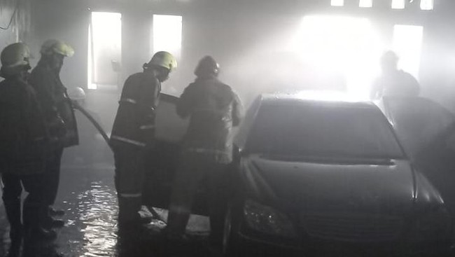 Mulat mengatakan api dipicu korsleting di mobil yang sedang terparkir. Api kemudian menyebar ke plafon bengkel.