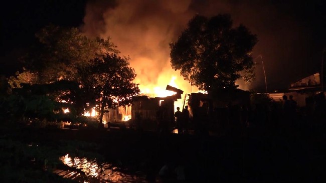 Sebelas unit rumah di Jalan Veteran Lorong 41, kota Makassar, Sulawesi Selatan (Sulsel). Kebakaran cepat membesar dan menjalar ke rumah warga lainnya, lantaran rumah yang rata-rata terbuat dari bahan semi permanen.