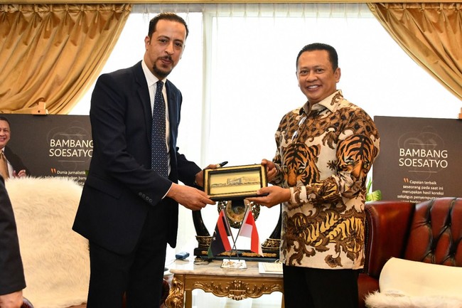 Ketua MPR RI Bambang Soesatyo menerima kedatangan Duta Besar Libya untuk Indonesia, H.E Mr. Zakarya MM El Maghrabi. Dalam pertemuan ini, keduanya sepakat meningkatkan kerja sama ekonomi antara Indonesia dengan Libya.