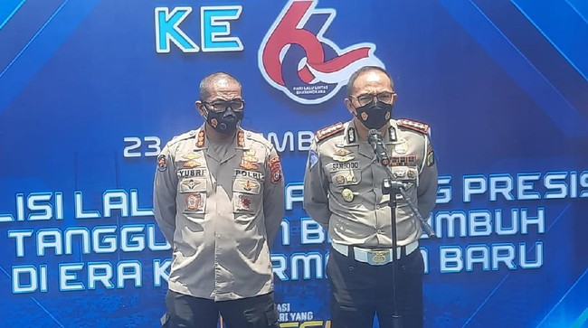 Ditlantas Polda Metro Jaya hari ini menggelar acara syukuran terkait HUT Lantas Bhayangkara yang ke-66 tahun. Dalam peringatan hari jadi itu, Dirlantas Polda Metro Jaya Kombes Sambodo Purnomo Yogo turut menyampaikan sejumlah anggotanya yang meninggal akibat COVID-19.