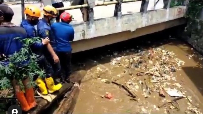 Dinas PUPR Kota Depok siang tadi membersihkan Kali Mampang. Saat petugas menyisir kali, ditemukan batang pohon dan sampah yang menyumbat Kali Mampang.