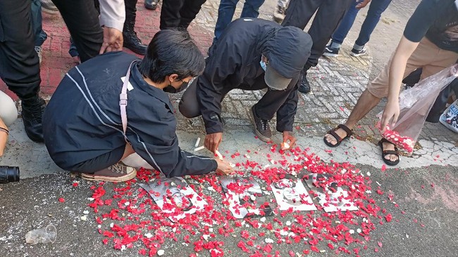 Mereka juga menampilkan beberapa foto korban 'September Hitam'. Mereka menaburkan bunga di atas foto-foto tersebut.