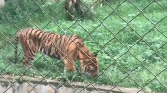 "Harimau Sumatera yang ada di Medan kemarin, badannya kurus dan memakan rumput. Kejadian di kebun binatang Medan," demikian narasi yang menyertai video itu.