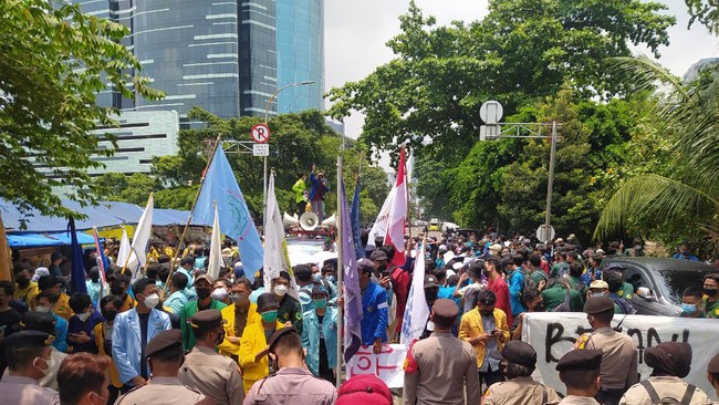 Aliansi Badan Eksekutif Mahasiswa Seluruh Indonesia (BEM SI) menggeruduk Gedung Merah Putih KPK, Jakarta, terkait pemberhentian 56 pegawai KPK yang tidak lolos tes wawasan kebangsaan (TWK). Jalanan di depan gedung KPK pun ditutup.