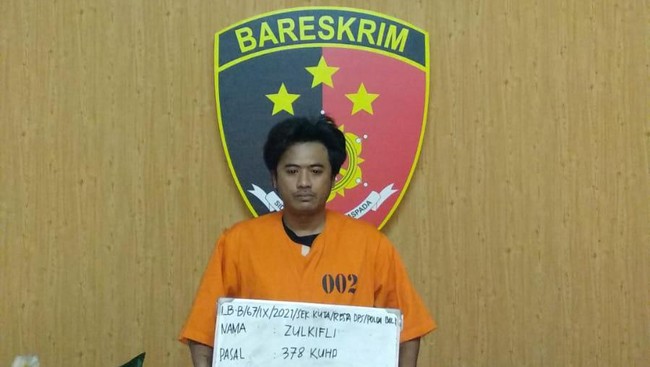 Seorang pria di Bali bernama Zulkipli dibekuk pihak Kepolisian Sektor (Polsek) Kuta. Lelaki kelahiran Jakarta itu ditangkap karena diduga melakukan penipuan dan penggelapan kepada seorang pegawai negeri sipil (PNS).
