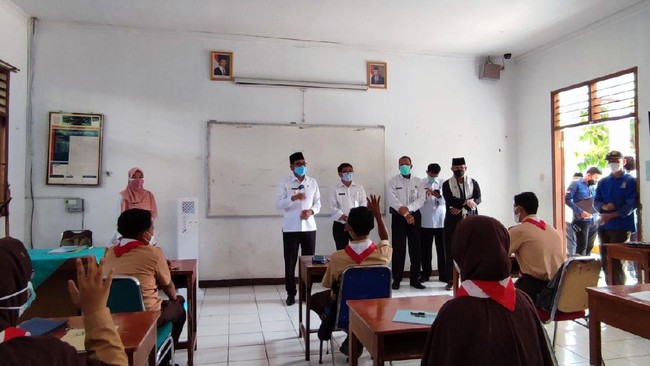 Pemerintah Kota Depok, Jawa Barat, menyelenggarakan simulasi pembelajaran tatap muka (PTM) terbatas. Wakil Wali Kota (Wawalkot) Depok Imam Budi Hartono meninjau langsung simulasinya di SMPN 2 Depok untuk memastikan pembelajaran berjalan lancar dan protokol kesehatan diterapkan.