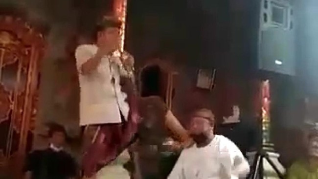 Dalam video yang beredar kepala desa tersebut terdengar menyanyikan salah satu lagu dari musisi nasional. Kepala desa itu pun sempat terlihat berjoget dan menginjakkan kaki di bahu orang terdekatnya.