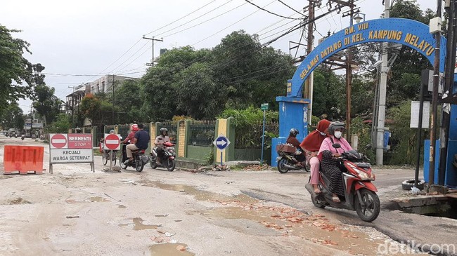 "Kalau hujan, jalanan ini tergenang, sangat berbahaya karena banyak lubang sisa dari proyek," kata seorang warga, Hendra, saat ditemui detikcom, Kamis (30/9/2021).