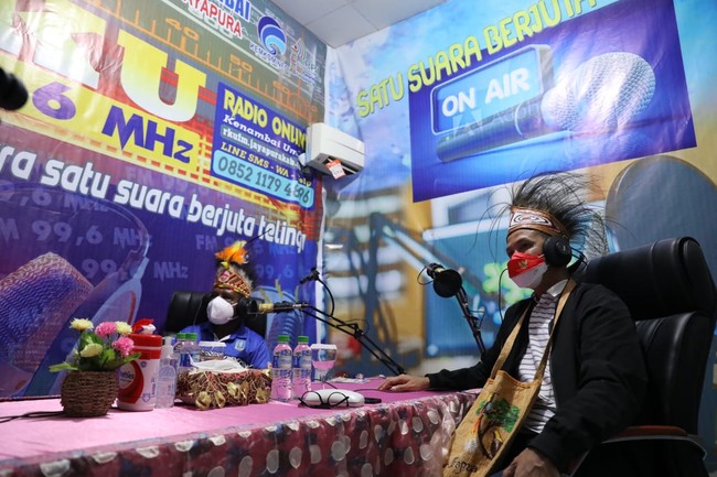 Di kesempatan tersebut, penyiar Radio Kenambai Umbai Ines mengajak Ganjar dan Mathius membahas soal perhelatan PON hingga ekonomi kreatif di Papua.