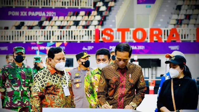 Jokowi meresmikan arena PON bersama Ketua DPR RI Puan Maharani, Menteri Pertahanan Prabowo Subianto, Menteri PUPR Basuki Hadimuljono, dan Menteri Investasi/Kepala BKPM Bahlil Lahadalia. Turut hadir pula Panglima TNI Marsekal Hadi Tjahjanto, Kapolri Jenderal Listyo Sigit Prabowo, Gubernur Papua Lukas Enembe, Bupati Jayapura Mathius Awoitauw, dan Staf Khusus Presiden Billy Mambrasar.