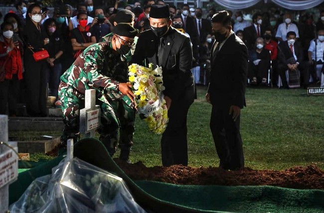 Ketua MPR Bambang Soesatyo menjadi Inspektur Upacara dalam pemakaman jenazah Sabam Sirait, Anggota DPD sekaligus Anggota MPR RI periode 2019-2024. Sabam Sirait dimakamkan di TPM Kalibata, Jakarta Selatan pada hari ini.