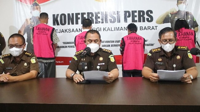 "Pada hari Senin, tanggal 4 Oktober 2021, penyidik Tindak Pidana Khusus Kejati Kalbar, setelah memeriksa para tersangka, melakukan penahanan terhadap para tersangka," tulis keterangan resmi Kejati Kalbar.