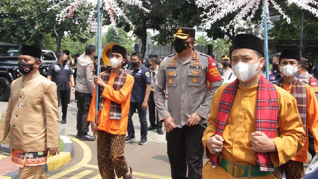 Rombongan Polres Jakarta Pusat dipimpin Kapolres Kombes Hengki Haryadi, Selasa (5/10/2021) pagi tadi, secara mendadak mendatangi kantor Polres Jakarta Pusat. Palang Pintu hingga musik tanjidor mengiringi Kombes Hengki dan jajaran saat memberikan kejutan.