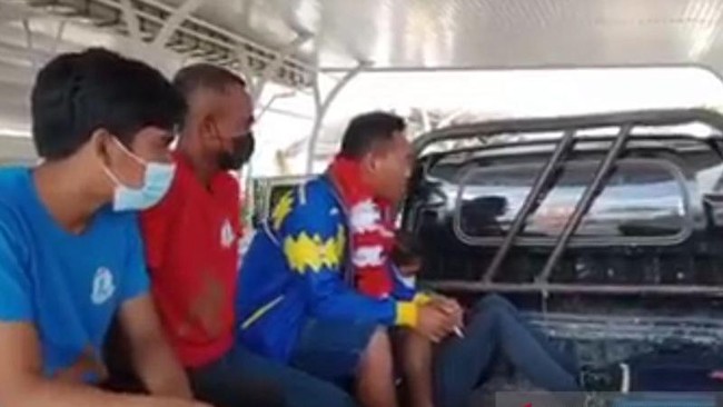 Berdasarkan gambar dan video yang beredar, Rabu (6/10/2021), tampak Susanti duduk di dasar bak pikap berwarna hitam itu. Terlihat Susanti mengenakan jaket bergaris kuning dan biru.