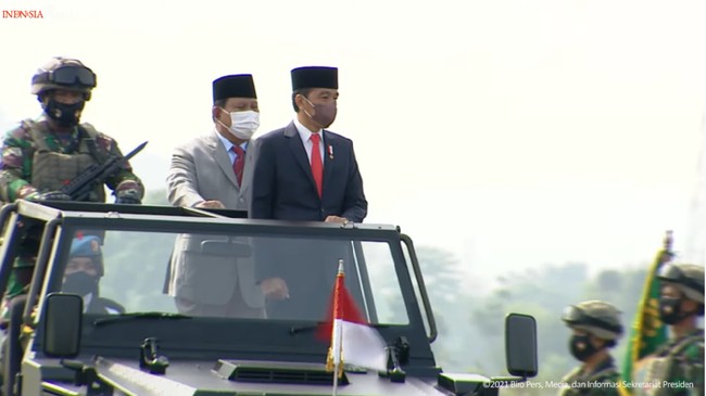 Hal itu disampaikan Jokowi saat memberi amanat di Upacara Penetapan Komponen Cadangan Tahun 2021, di Pusdiklatpassus, Bandung Barat, Jawa Barat, Kamis (7/10/2021). Selain Jokowi, hadir Menhan Prabowo Subianto, Panglima TNI Marsekal Hadi Tjahjanto, Kapolri Jenderal Listyo Sigit Prabowo, dan Kepala Staf TNI AL, AU, dan AD, serta Gubernur Jabar Ridwan Kamil.