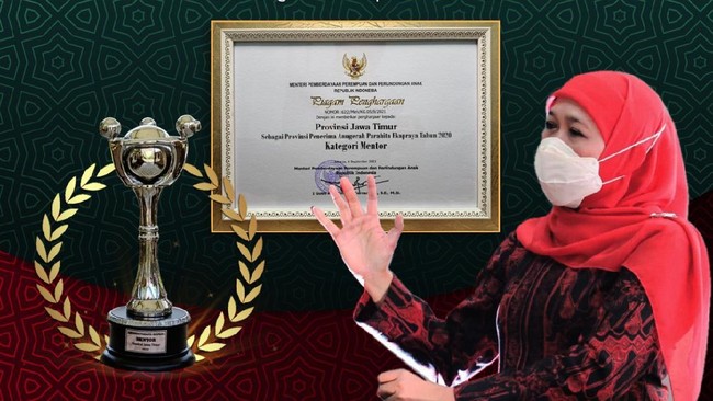 "Ini adalah bentuk apresiasi tertinggi dari pemerintah pusat melalui Kementerian Pemberdayaan Perempuan dan Perlindungan Anak (Kemen PPPA). InsyaAllah, Jawa Timur akan konsisten dalam mewujudkan kesetaraan dan keadilan gender," kata Gubernur Jawa Timur Khofifah Indar Parawansa dalam keterangan tertulis, Kamis (7/10/2021).