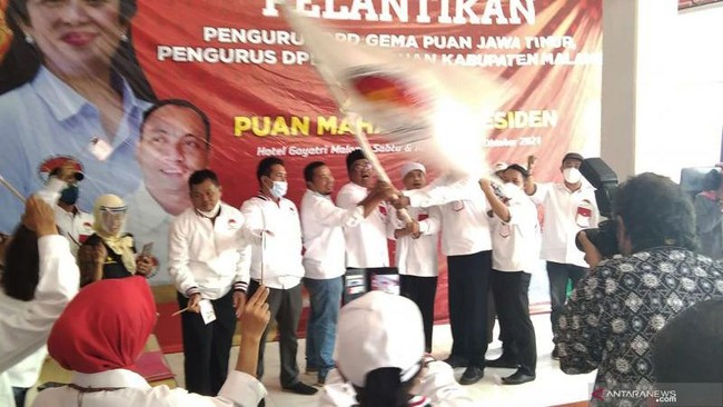 Para relawan dan pendukung Puan Maharani di wilayah Kabupaten Malang, Jawa Timur, mendeklarasikan Gema Puan. Deklarasi Gema Puan bertujuan memberikan dukungan kepada Ketua DPR tersebut maju menjadi calon presiden pada 2024.