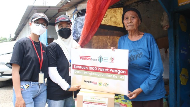 Vinilon Group berkolaborasi dengan Rumah Sosial Kutub mendistribusikan 1.000 bantuan paket pangan untuk masyarakat duafa dan warga terdampak COVID-19. Bantuan yang diberikan dalam rangka ulang tahun ke-42 ini diberikan di Desa Limusnungga, Cileungsi, Jawa Barat para Rabu (6/10) lalu.