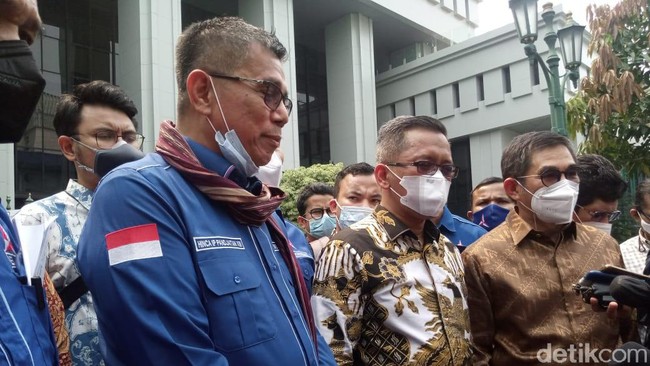"Tadi kami baru saja diterima di gedung Mahkamah Agung oleh panitera dan panitera muda tata usaha negara serta humas Mahkamah Agung. Dan kami secara resmi menyampaikan permohonan sekaligus keterangan sebagai pihak termohon intervensi pada Mahkamah Agung berikut keterangan-keterangan yang disampaikan oleh Partai Demokrat sehubungan dengan judicial review terhadap Anggaran Dasar, Anggaran Rumah Tangga (AD/ART) Partai Demokrat berikut bukti-buktinya," kata kuasa hukum PD Hamdan Zoelvan di Mahkamah Agung, Jakarta Pusat, Senin (11/10/2021).