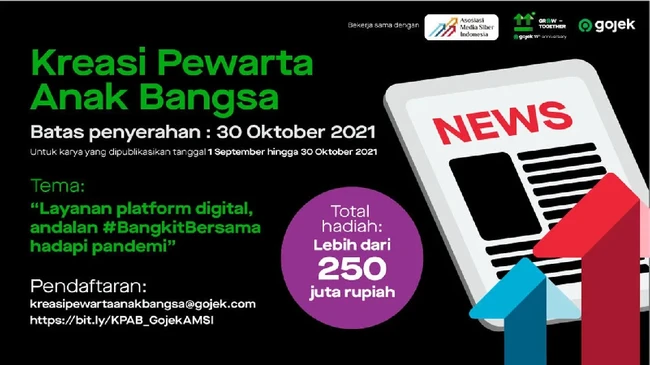 "Melalui penyelenggaraan KPAB ini Gojek dan AMSI tentunya berharap dapat menumbuhkan optimisme untuk bangkit bersama menghadapi tantangan pandemi," kata Audrey.