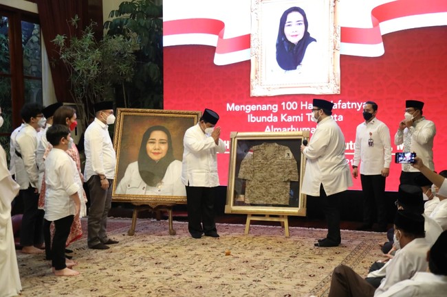 "Saya ingin mengucapkan terima kasih kepada yang saya hormati dan saya banggakan, kepada Bapak Menhan (Menteri Pertahanan), Bapak Prabowo Subianto, atas atensi Bapak yg telah menyelenggarakan tahlil dan memperingati 100 hari berpulangnya ibunda tercinta kami, Ibu Rachmawati Soekarnoputri," ucap Marhendra dalam keterangan tertulis, Jumat (15/10/2021).
