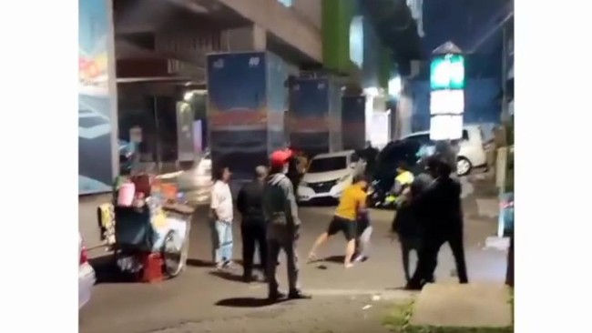 Sebuah video memperlihatkan aksi baku hantam viral di media sosial. Sejumlah pria terlibat saling pukul di jalan raya.