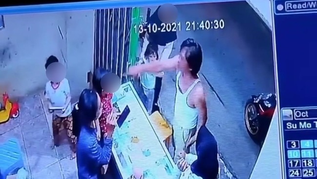 Masih berdasarkan video yang viral, anak korban yang berusia balita menangis histeris. Si ibu kemudian menyerahkan anak balitanya untuk digendong tetangga lain, karena pelaku yang mengenakan kaus dalam putih dan celana panjang cokelat muda masih tampak emosional terhadap dirinya.