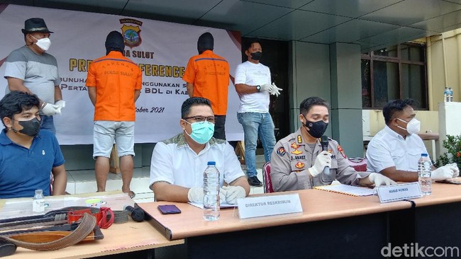 "Melakukan penangkapan terhadap terduga pelaku AP alias Nando pada hari Sabtu (16/10) sekitar pukul 00.30 Wita di Pelabuhan Rakyat Sorong Provinsi Papua Barat. Terduga pelaku SS (44) ditangkap pada hari Jumat, 1 Oktober 2021, di Desa Tambun, Kecamatan Dumoga Timur, Kabupaten Bolmong," kata Dirkrimum Polda Sulut, Kombes Gani Siahaan, kepada wartawan di Polda Sulut, Senin (18/10/2021).
