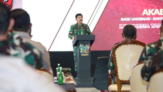 Panglima TNI Marsekal Hadi Tjahjanto mengungkapkan vaksinasi 208 juta penduduk Indonesia bukan perkara mudah. Masih ada warga di sejumlah daerah yang menolak vaksin lantaran termakan hoax.