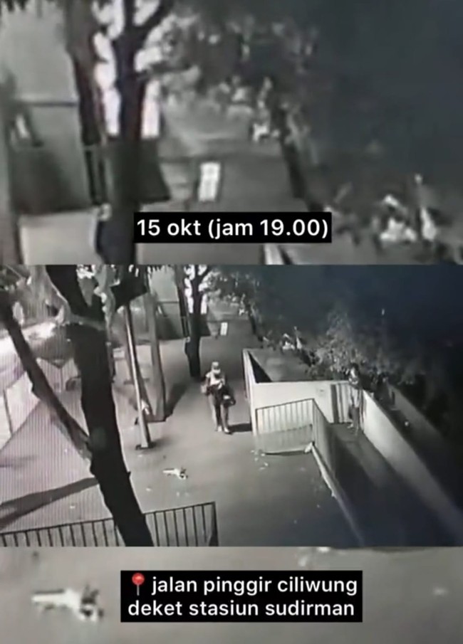 Lokasi peristiwa berada di jalur pejalan kaki, persimpangan antara Jl Jenderal Sudirman dan Jl RM Margono Djojohadikoesomo, pinggir Kali Ciliwung. Di seberang kali, tampak Stasiun MRT BNI City. Di seberang Jl Jenderal Sudirman, tampak Stasiun KRL Sudirman.