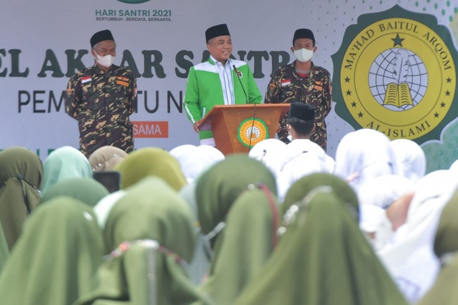 "Kita ingin mengingatkan para santri sekarang atas ghiroh dan perjuangan para santri terdahulu yang berjibaku, berkorban, membangun dan memerdekakan Indonesia," terangnya.