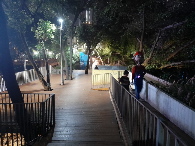 Ada empat buah lampu dan satu penambahan lagi. Di bagian jalur ini pula terdapat pepohonan yang rindang. Sinar beberapa lampu sedikit terpengaruh oleh pepohonan, meski tidak sampai membuat gelap.