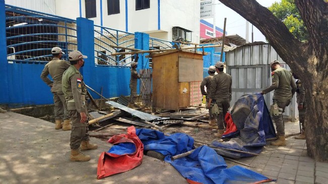 Proses pembongkaran warung itu sempat mendapat protes dari pemilik warung. Adu mulut antara Satpol PP dan pedagang tak terhindarkan, meski begitu, situasi terkendali dengan mendapatkan pengawalan dari pihak kepolisian dan TNI.