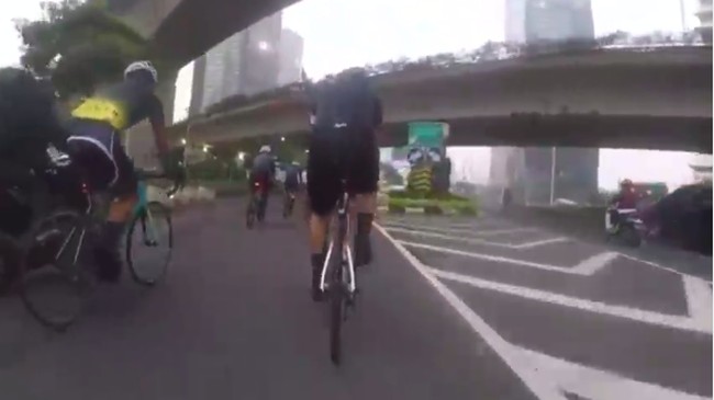 Dalam video itu, terlihat road biker sedang gowes peletonan bersama rombongannya. Tiba-tiba dari samping kiri pelaku menyambar handphone yang disimpan di kantong baju bagian belakang korban.