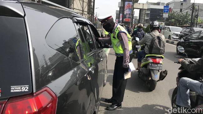 Polisi menerapkan sanksi tilang bagi pengendara melanggar ganjil-genap di 13 titik di Jakarta, salah satunya Jalan Fatmawati, Cilandak, Jakarta Selatan (Jaksel). Puluhan pengendara kena sanksi tilang.