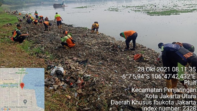 Dinas Lingkungan Hidup DKI Jakarta mengaku sedang membersihkan Waduk Pluit Selatan, Jakarta Utara, yang penuh sampah. Pengerjaan disebut telah dikerjakan sudah hampir seminggu.