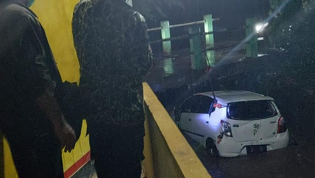 "Jam 11 malam itu tapi udah diangkat pake crane. Nggak ada korban. Pengemudi kan udah di dalam, cuman dia doang. Jadi nggak ada luka parah, cuman (kerugian) materi aja. Pengemudi pas jatuh dia bisa keluar," paparnya.