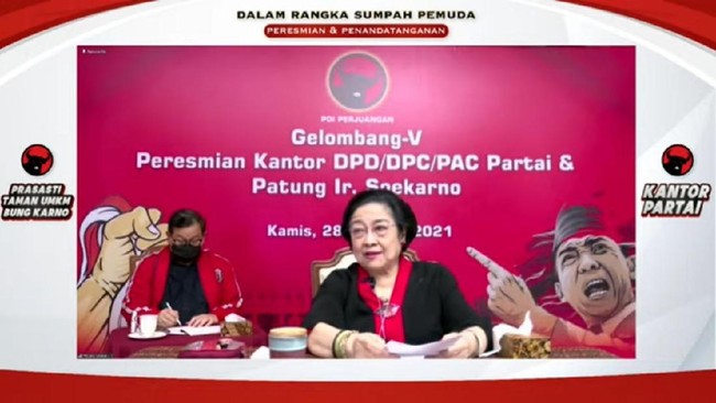 Megawati bicara keinginan partainya agar terus dipercaya oleh masyarakat. Hal itu disampaikan saatsaat acara webinar Peresmian dan Penandatanganan Prasasti Taman UMKM Bung Karno dan 16 Kantor Partai dalam rangka Hari Sumpah Pemuda, Kamis (28/10/2021).