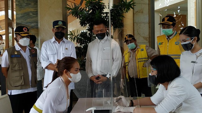 Dalam kunjungan itu, Budi Karya menyaksikan simulasi penerimaan wisman saat mulai karantina hingga masuk ke kamar yang sudah disediakan. Dirinya juga sempat melihat kamar hotel dan prosedur pelayanan terhadap wisman yang menjalani karantina.