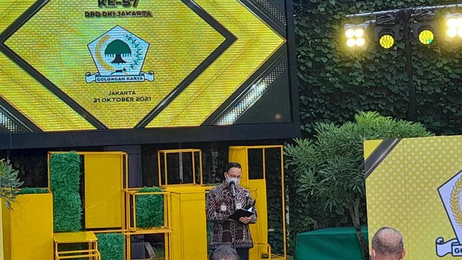 "Selama masa pandemi kebetulan Pak Zaki (Ketua DPD Golkar DKI Jakarta) ini dilantiknya 1 Maret (2020). Itu adalah hari di mana kita mengumumkan kasus COVID. Jadi saya ingat itu di mana hari pagi diumumkan, waktu itu masih nyebutnya ODP, PDP pada malamnya acara di sini dan dilantik pandemi. Saya kira masa kiprahnya adalah masa pandemi. Catatannya pasti ada, bukan hadir memantau tapi hadir bekarya," ucapnya dalam sambutan di acara Puncak HUT Partai Golkar di Kantor DPD Golkar pada Minggu (31/10/2021).