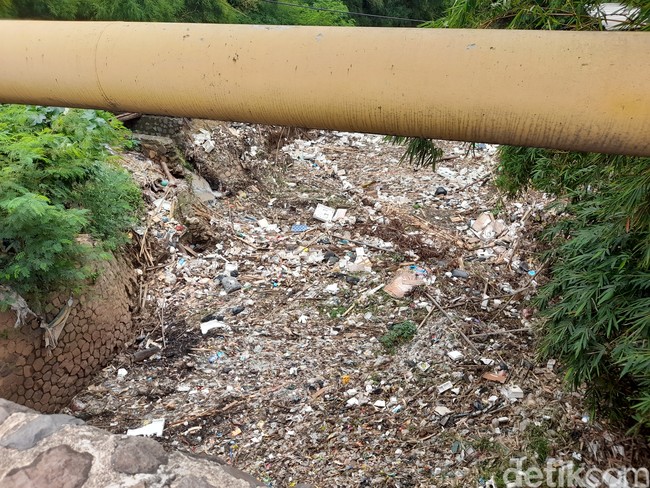 Berdasarkan pantauan detikcom di Kali Jambe belakang rest area Km 19 yang berada di Jatimulya, RT 07 RW 08, Kelurahan Jatimulya, Kecamatan Tambun Selatan, Bekasi, Senin (1/11/2021), tampak tumpukan sampah masih tertimbun layaknya seperti hamparan.