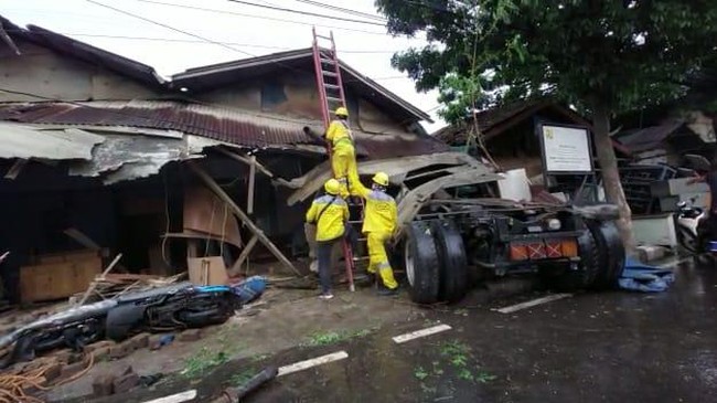 Sebuah truk trailer menyeruduk bengkel mebel di Jl Lingkar Luar, Cengkareng, Jakarta Barat. Selain itu, pengemudi truk trailer menabrak motor yang ada di lokasi tersebut.